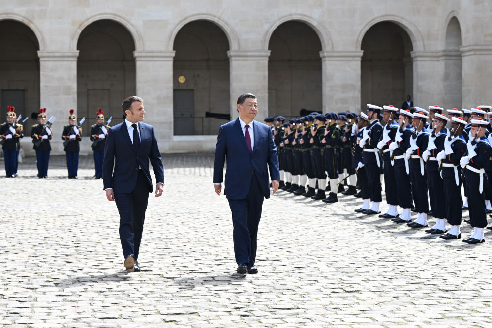 当地时间5月6日下午,正在法国进行国事访问的国家主席习近平在巴黎出席法国总统马克龙举行的隆重盛大欢迎仪式。