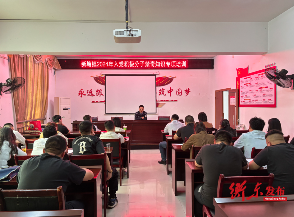 为深入贯彻落实上级有关禁毒工作的决策部署,严把党员入口关,提高党员干部参与禁毒工作的积极性、主动性、专业性,5月6日下午,新塘镇召开2024年入党积极分子禁毒知识专项培训,由镇司法所进行现场讲课,20余名入党积极分子参加培训。