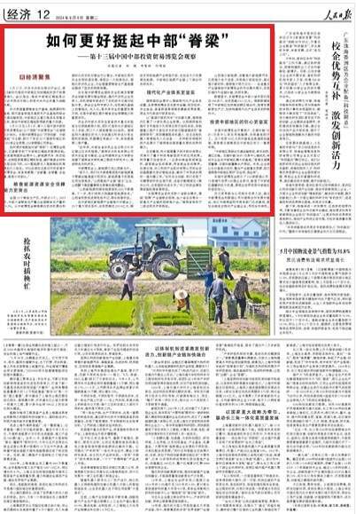 全国13个粮食主产区,中部占5个。2023年,中部六省粮食总产量占全国粮食总产量的29.2%。从中部博览会琳琅满目的农机展台和国际化的农机对接会可以看出,中部地区现代农业实现快速发展,涌现出一大批绿色化、智能化的农机企业,为全国重要粮食生产基地建设提供了坚实的物质保障。