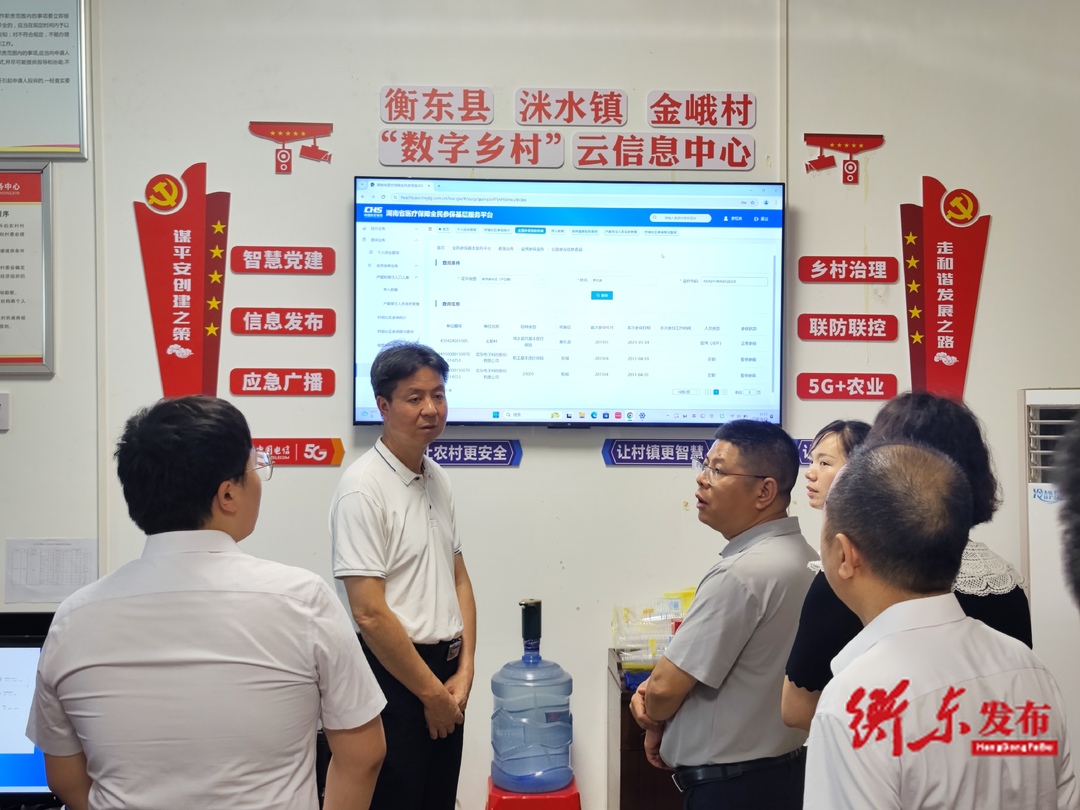 谢宏一行先后来到洣水镇金峨村、兴东社区,通过听取汇报、查看台账、观看参保人员全量信息数据库系统演示,详细了解医保服务点的运行情况,并与相关单位负责人,现场工作人员深入交流。