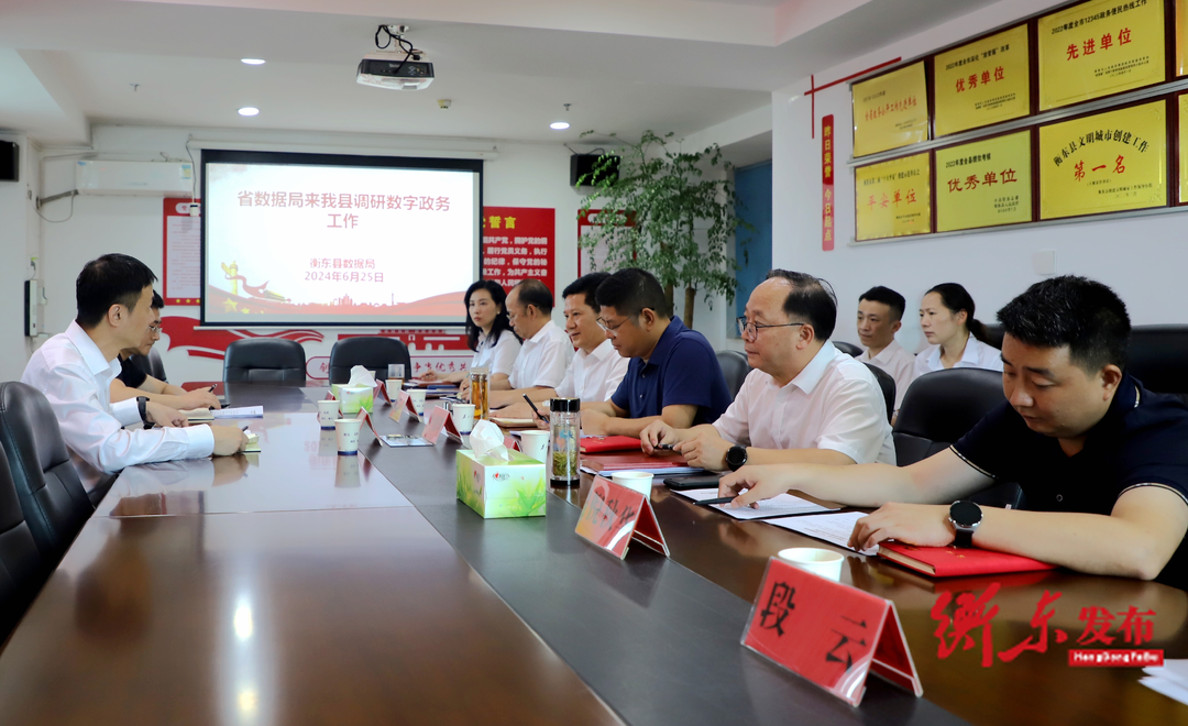 衡东融媒6月25日讯(通讯员 向 翠)6月25日,湖南省数据局政务服务处处长吴彦博赴我县数据局就政务大厅管理、清廉大厅建设、“办不成事”兜底服务机制建设等工作进行调研并召开座谈会。副县长尹朝晖,县政协副主席谢光明陪同调研。