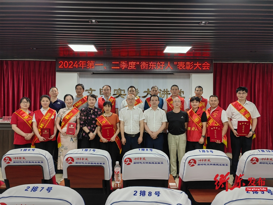 会上,宣读了衡东荣获“中国好人”、“湖南好人”、“衡阳好人”、各级道德模范情况,衡东籍2023年度“中国好人”“湖南好人”“衡阳好人”,2024年第一、二季度“衡东好人”名单、基本情况及简要事迹,并进行了现场颁奖。各级道德模范代表作了发言。