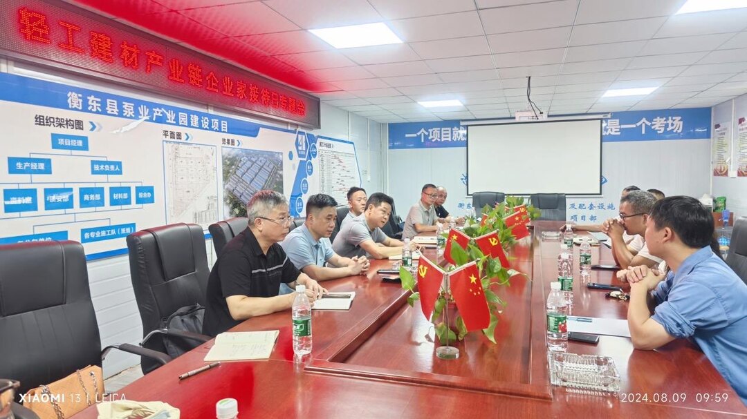 衡东融媒8月9日讯(通讯员 董柏清  刘静) 8月9日上午,县轻工建材产业链副链长、县政协副主席李思源带队到泵业智造产业园调度衡东华通新材料有限公司入驻工作,现场召开“企业家接待日”专题座谈会,与各有关单位、企业负责人深入探讨企业入驻存在的困难问题,并提出解决意见