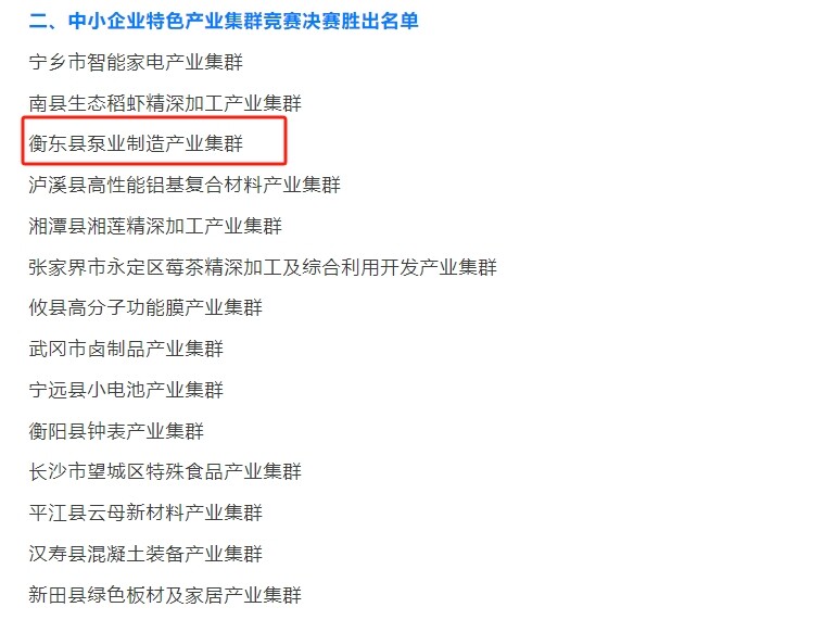 湖南省工业和信息化厅公示了《2025年湖南省产业集群竞赛胜出名单》