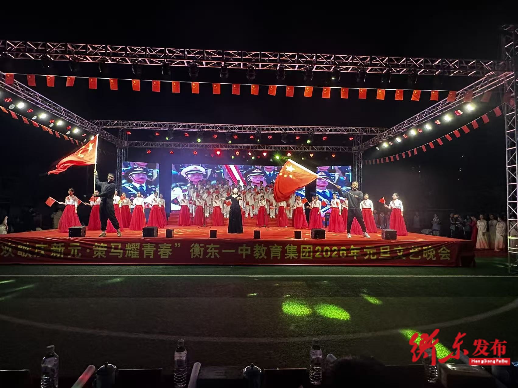 衡东融媒12月29日讯(融媒体记者 李智勇 刘星野 成叶婷(实习))12月28日晚,衡东一中教育集团2026年元旦文艺晚会在学校田径场举行。