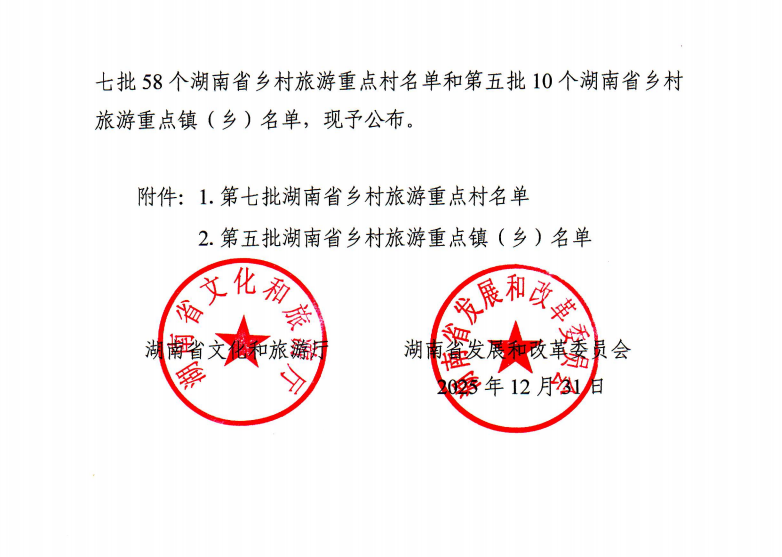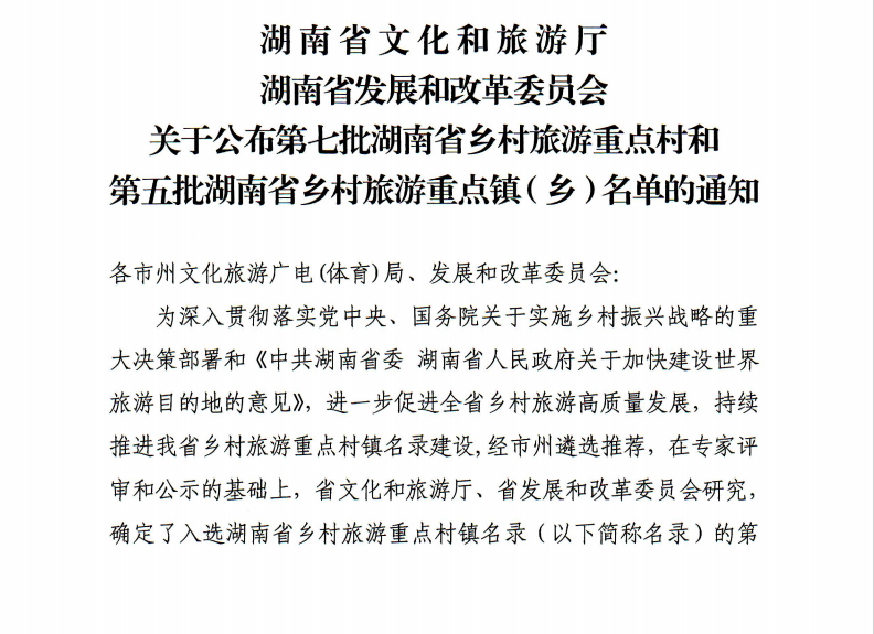 近日,湖南省文化和旅游厅、湖南省发展和改革委员会联合公布了第七批湖南省乡村旅游重点村和第五批湖南省乡村旅游重点镇()名单的通知,其中,我县荣桓镇南湾村荣获第七批“湖南省乡村旅游重点村”称号。