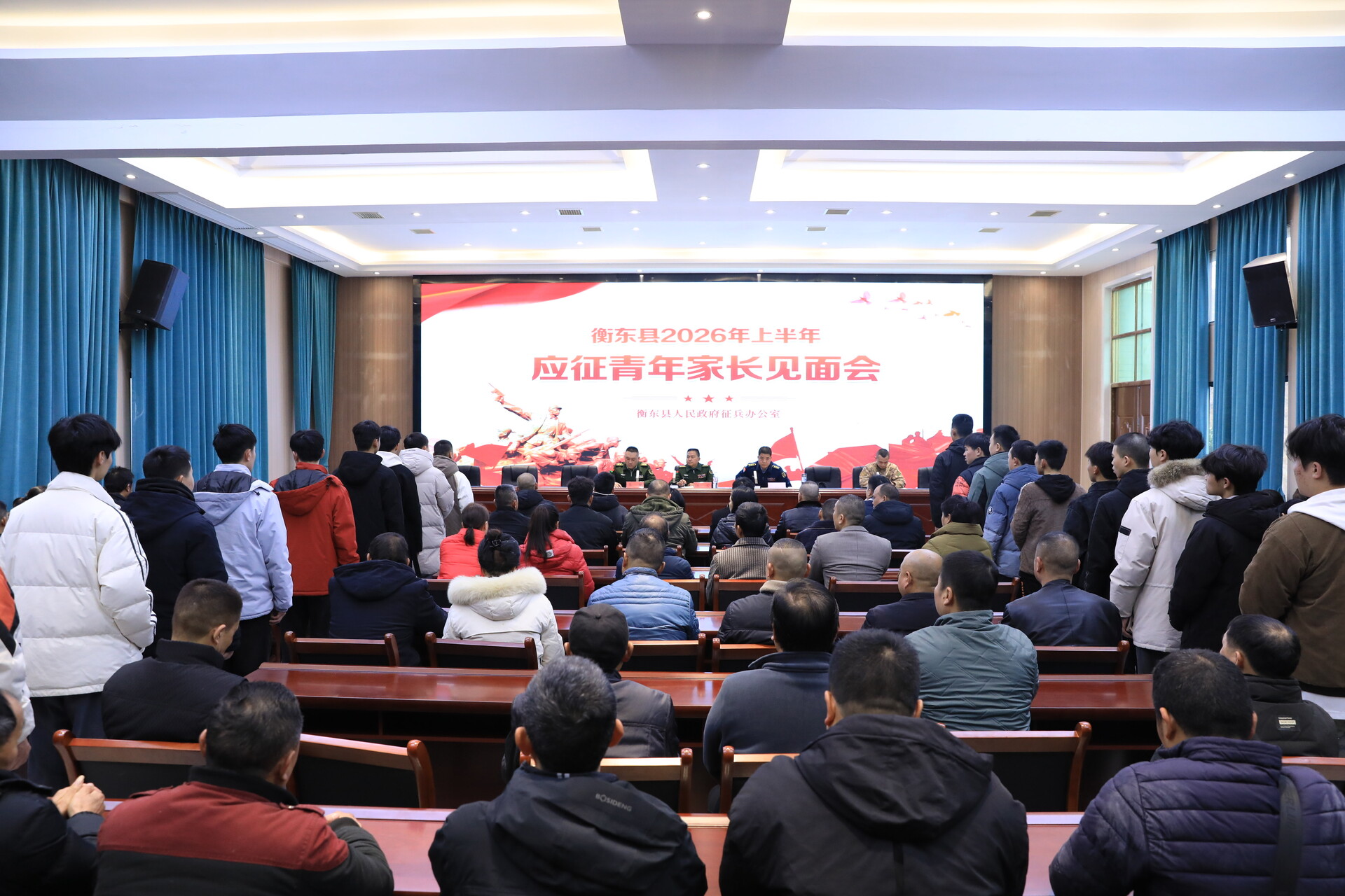 衡东融媒2月11日讯(通讯员 邓东)2月11日,衡东县2026年上半年应征青年暨家长见面会在县民兵训练基地召开,县人武部政委郭国平主持,县委常委、县人武部部长陈坚讲话。