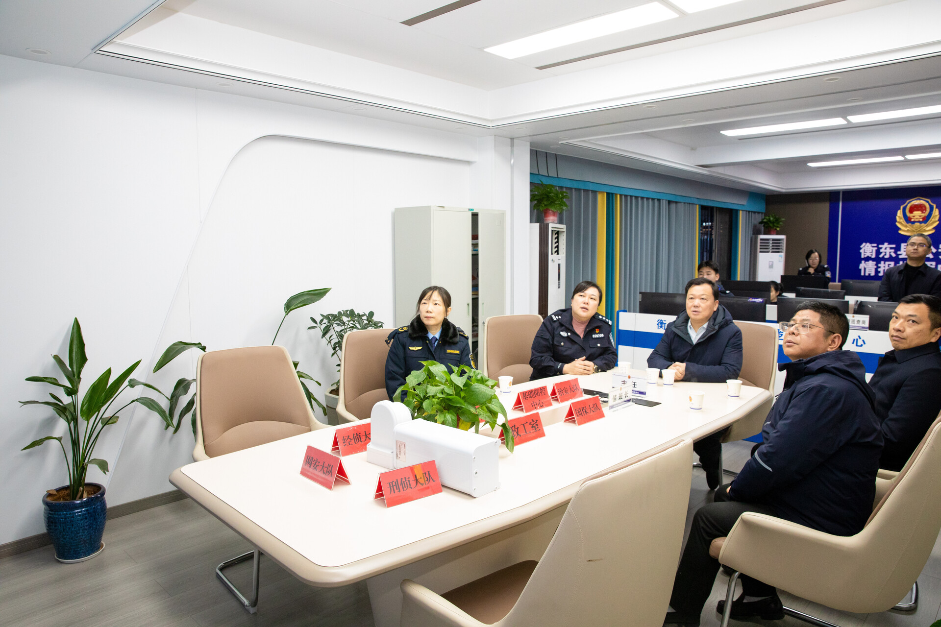 图:谭建华到县公安局巡逻防控中心听取工作汇报​
