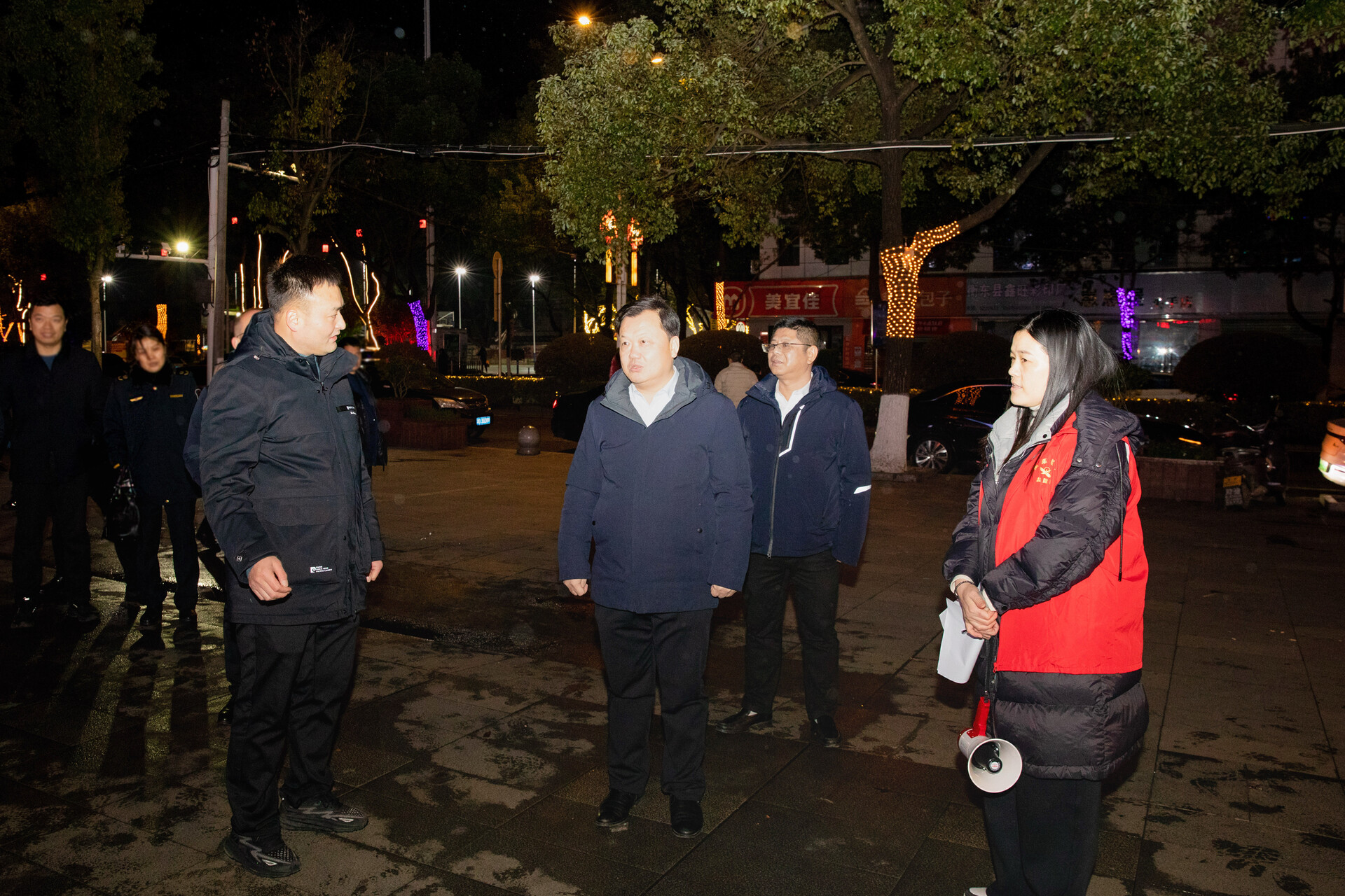 衡东融媒2月16日讯(融媒体记者 谭忠 谭碧婷)2月16日除夕晚上,万家团圆之时,县委书记谭建华采取“四不两直”方式,先后前往县城洣江社区、滨江广场、万上财富广场及县公安局,实地督导烟花爆竹禁燃禁放、安保维稳、道路交通保畅等重点工作,并看望慰问坚守岗位的值班值守人员,向大家致以新春美好祝福,勉励大家以高度的责任感和使命感,扎实做好各项工作,全力守护全县群众度过一个平安、祥和、欢乐的新春佳节。