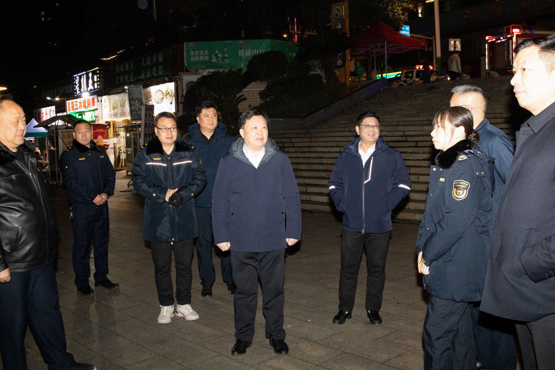 随后,谭建华前往滨江广场,实地检查禁燃禁放管控力量部署、措施落地情况,叮嘱现场值守人员坚守岗位、履职尽责,紧盯重点时段、重点区域,切实筑牢禁燃防线。在万上财富广场,他与各部门抽调的志愿者亲切交流,详细了解迎宾社区禁燃禁放宣传引导和现场管控工作,对大家牺牲团圆时间坚守岗位的奉献精神给予肯定。
