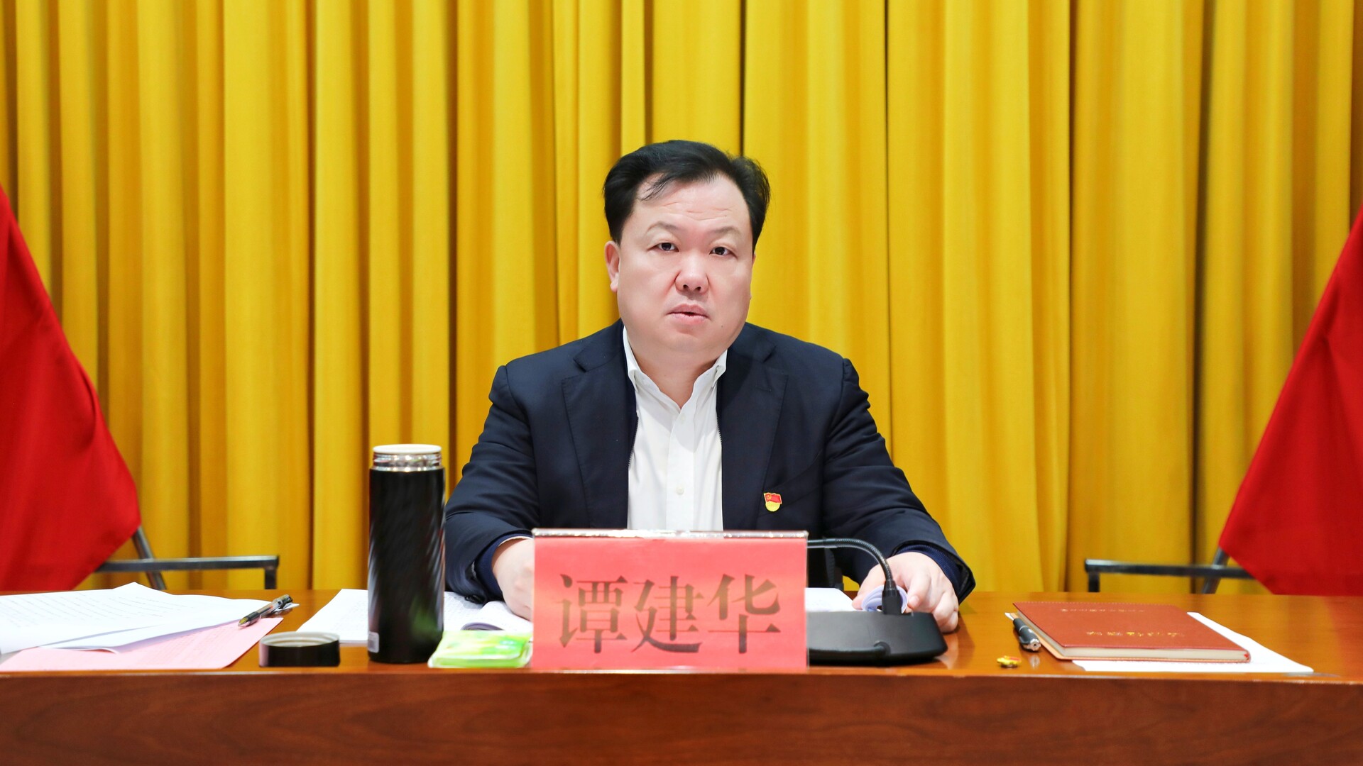 图:县委书记谭建华主持会议