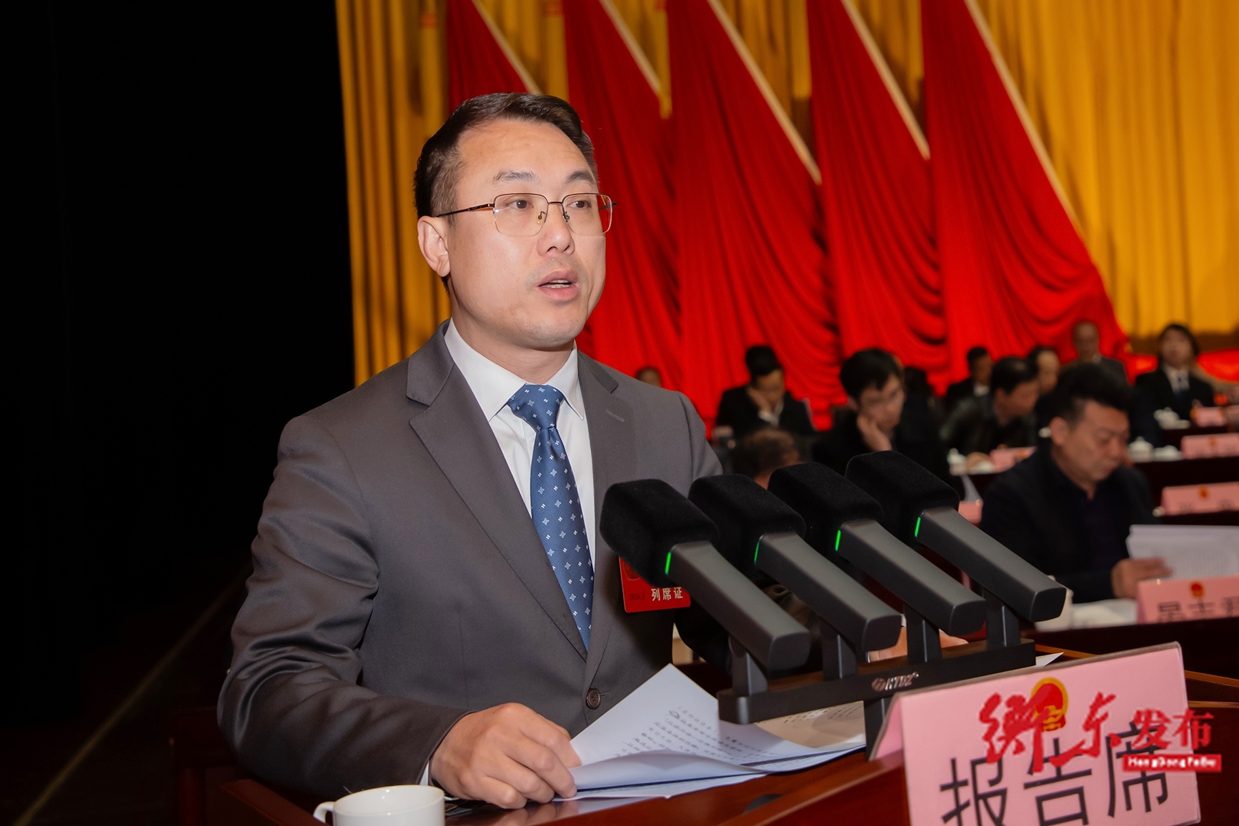 图:县委副书记、代县长袁立代表县人民政府作《政府工作报告》