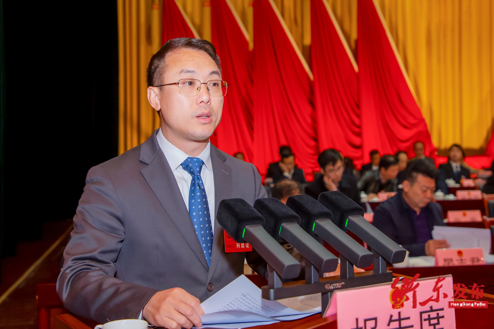 图:县委常委、常务副县长刘知生向大会报告县人民政府2026年度民生实事候选项目形成过程及基本情况