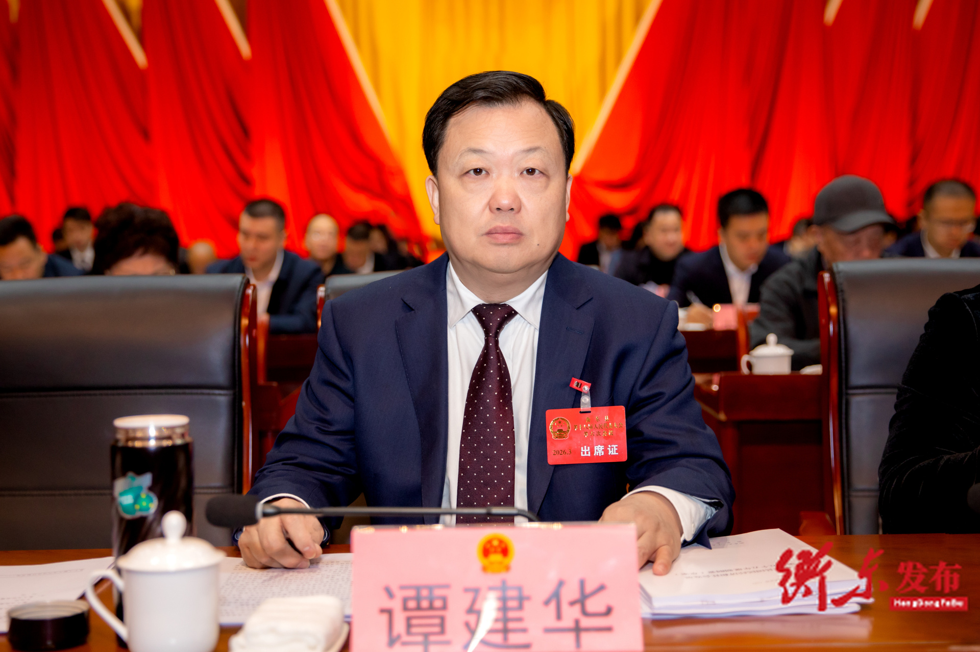 图:县委书记谭建华参加会议并在主席台前排就座