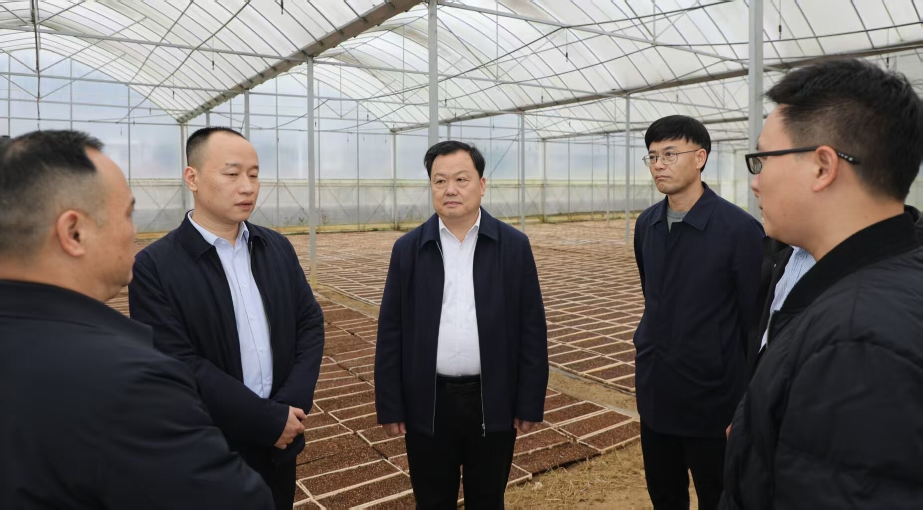 图:谭建华到小初村大棚育秧点调研春耕生产